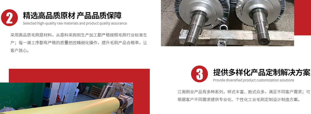 潛山江南刷業(yè)有限公司生產(chǎn)汽車噴涂鴕鳥(niǎo)毛毛刷,鋁板脫脂線輥刷,鋁板去氧化皮輥刷,淬火爐爐內(nèi)輥,無(wú)紡布擠油輥擠干輥,無(wú)紡布真空吸油輥,電加熱打孔針輥等,以及各類涂油滾&膠輥&海綿滾&不織布輥、密封刷&鋼刷式密封、輸送帶刷式清掃器&牛體刷、鋼絲刷條&鋼絲板刷、PVC毛刷板&尼龍毛刷條、打孔鋁針輥&打孔銅針輥、圓形滾刷毛刷輥系列、圓形鋼刷&鋼絲刷輥、拋光毛刺磨料刷、試管刷&管道刷等各類刷制品。江南刷業(yè)注重...